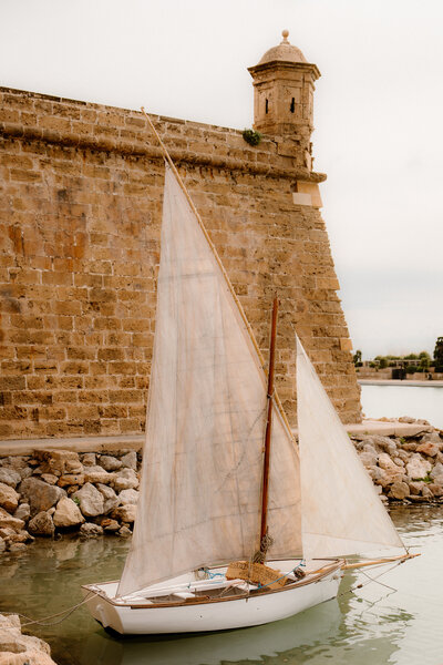 Deze charmante print vangt de tijdloze elegantie van een klassieke zeilboot, aangemeerd bij een historische stenen kade. Perfect voor interieurs die verlangen naar verhalen van verre oorden.