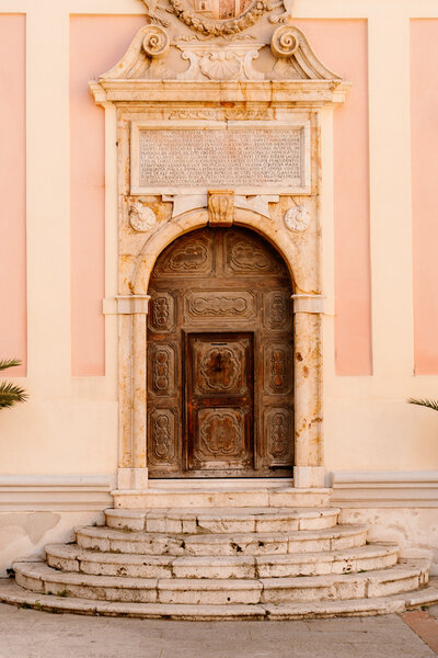 Deze print vangt de warme sfeer van een zachte roze muur gecombineerd met een imposante, rustieke bruine deur.Een kleurrijk contrast dat charme en karakter toevoegt aan je interieur